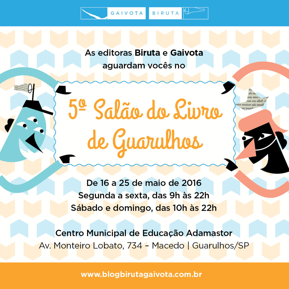 Em nome do Grupo Autêntica, convido a todos para aproveitarem o 5º Salão do Livro de Guarulhos, que ocorrerá entre os dias 16/05 e 25/05, que será no Centro Municipal de Educação Adamastor.