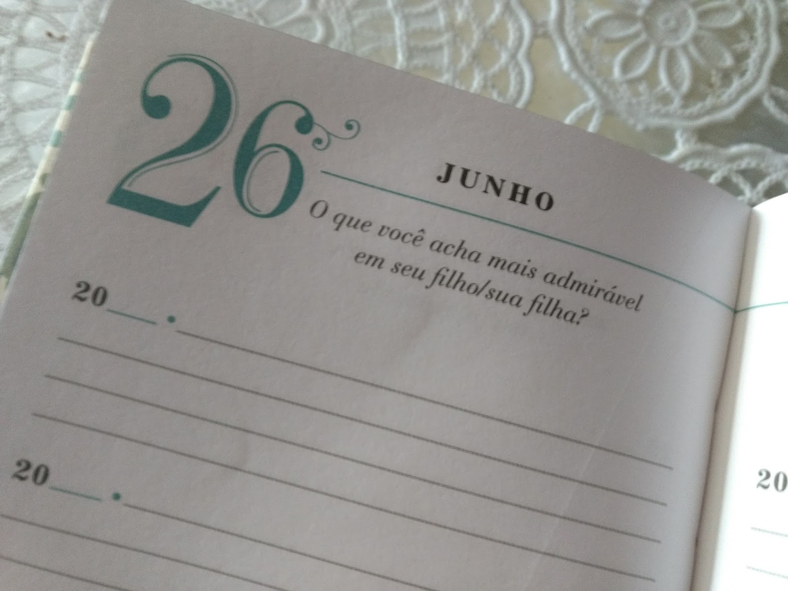 O legal é que além de você poder começar a qualquer momento o livro, no final, ou quem sabe, quando for responder no próximo ano, a mãe perceba o que de diferente há em sua resposta. Se de um ano para outro mudamos tanto, imagine este registro no final de cinco anos!!!