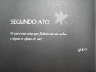 Detalhe do marcador e das folhas que dividem o livro, como é um "Romeu e Julieta" moderno, dividiram em atos, como em uma peça: